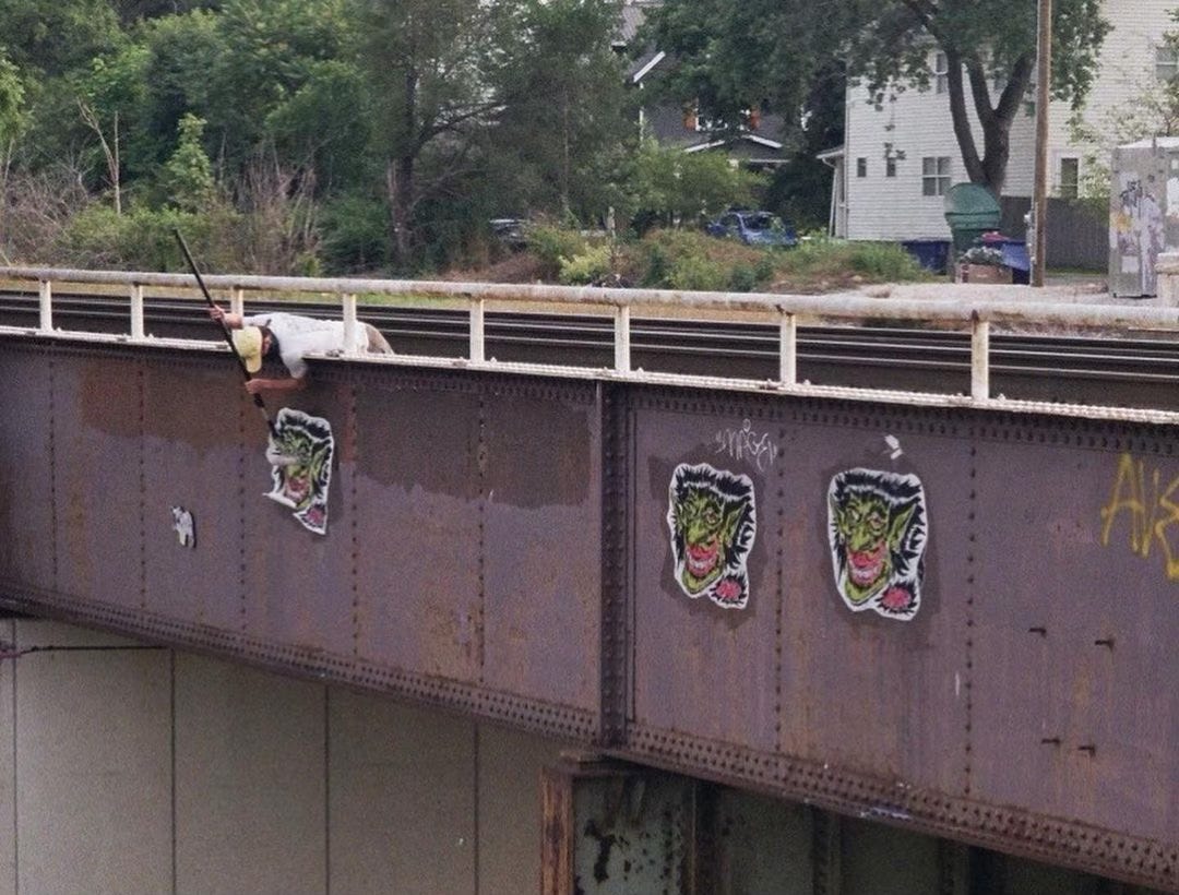 Goblin: I do not. There are a lot of graffiti-heads in Columbus, so I think it’s like street art versus, like, people that do wheat pasting. It's kind of seen as too easy. It's not technically illegal, so if you hit spots that taggers or graffiti artists or people who write could hit, they could get mad and just X you out. One thing about graffiti in general is that it's like 50% gossip, 50% actually doing things. Like half of it is just the stories that people say. So, your guess is as good as mine. Let's come up with a story, you know?